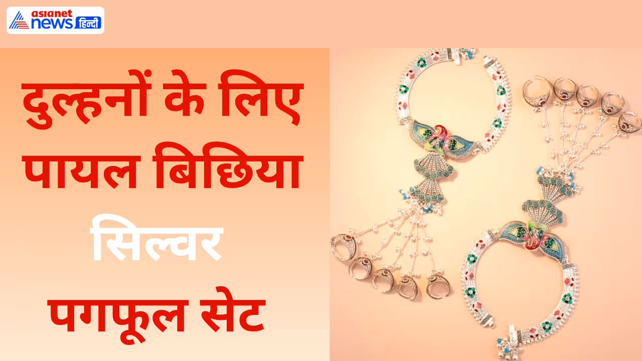 मल्टी रिंग अटैचमेंट बिछिया सेट के साथ आने वाली यह पगफूल राजस्थानी ज्वेलरी से प्रेरित है, जो पैरों को भरा और शाही लुक प्रदान करता है। अगर आप शादी बाद ससुराल में बेसिक Silver Payal नहीं पहनना चाह रही हैं तो इसे चुनें। गुलाबी-हरे रंगे पत्थर रंगीन और चार्म क्रिएट कर रहे हैं। इस पगफूल की खास बात हार्टशेप पेंडेंट लगे हैं, जो बारीक नक्काशी के साथ आते हैं। आप इसे भारी लहंगे, शरारा या फिर मिनिमल इंडो-वेस्टर्न के साथ पहनें। यदि पैरों में चटक रंग का आलता लगाती हैं तो चांदी के ये रूप और भी ज्यादा खिलकर आएगा।