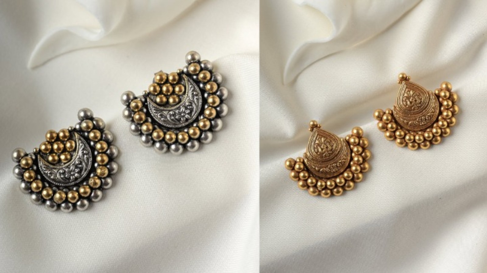 शादी-ब्याह से हर रोज पहनने के लिए Gold Jewellery महिलाओं की पसंदीदा होती है, लेकिन आजकल सोने का भाव आसमान पर है। ऐसे में गोल्ड में कुछ खरीदना काफी महंगा हो सकता है। आप भी कान के झाला खरीदने की सोच रही हैं लेकिन ज्यादा पैसे खर्च करने का बजट नहीं है तो क्यों न कुछ विंटेज अपनाते हुए राजसी और शाहीपन दिखाया जाए। यहां गोल्ड से हटकर देखें सिल्वर विंटेज इयररिंग्स की डिजाइन, जो क्लासी और एलीगेंट लुक देने के साथ इंडियन-वेस्टर्न से लेकर पार्टी और डेली वियर के लिए परफेक्ट है। इसे वियर कर आपका निखार 100% ज्यादा बढ़ जाएगा।