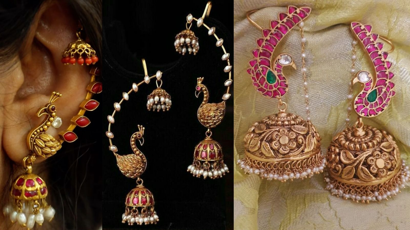 1. जड़ाऊ मोर इयररिंग विथ झुमका – शाही अंदाज, भारी काम