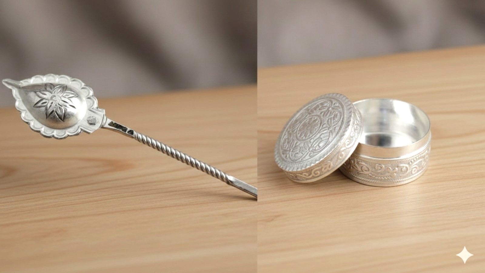 कड़ा- पायल से हटकर अगर आपका बजट कम है लेकिन तोहफे में कुछ यूनिक देना ही तो चांदी की काजल दानी बिल्कुल बढ़िया विकल्प है। ये सिंपल से लेकर फैंसी पैटर्न पर 500-700रू में मिल जाएंगी।