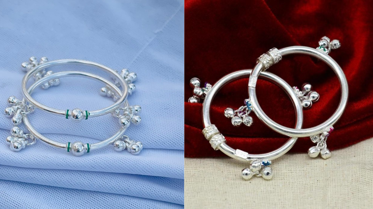 1-11 महीने की बच्चों के लिए चादी के बड़े बढ़िया रहते हैं। आप इसे मीनाकारी या घुंघरू की बजाय बिल्कुल प्लेन डिजाइन में खरीदें। हैवी वर्क बच्चों की त्वचा के नुकसानदायक होता है, यहां तक उन्हें चोट भी लग सकती है। ऐसे में सोबर पैटर्न परफेक्ट ऑप्शन है। लोकल सुनार की दुकान से Giva, तनिष्क जैसी ब्रांडेड ज्वेलरी 1200-2000रू में एक से बढ़कर फैंसी चांदी के कड़े ऑफर करते हैं, जिसे पसंद के हिसाब से चुन सकते हैं।