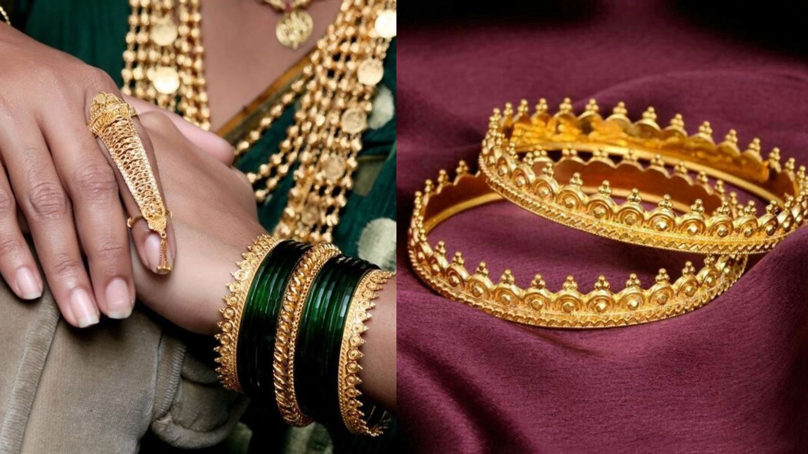 मराठी स्टाइल में बैंगल के डिजाइन की बात करें तो इस तरह के कंगन आपको देखने में प्योर गोल्ड के लगेंगे औऱ पहनने के बाद हाथों की चमक भी बढ़ाएंगे।