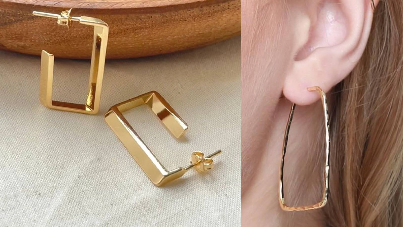 इस तरह के डिजाइन में गोल्ड की पतली वायर को मोड़कर गोल हूप्स बनाए जाते हैं। ये गोल्ड डिजाइन सिंपल होते हुए भी काफी ट्रेंडी लगते है, खासकर मिड एज वुमन को ये काफी पसंद आते हैं।