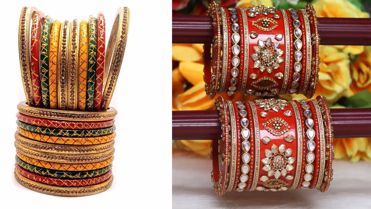 Lah Bangle: बिहार में लाह की चूड़ियां बहुत ही ज्यादा खूबसूरत बनाई जाती है। हल्दी सेरेमनी से लेकर शादी तक के लिए आपको इसमें अच्छे डिजाइंस मिल जाएंगे। ऑनलाइन आप इसे 500 रुपए के अंदर खरीद कर ग्लोइंग निखार पा सकती हैं।