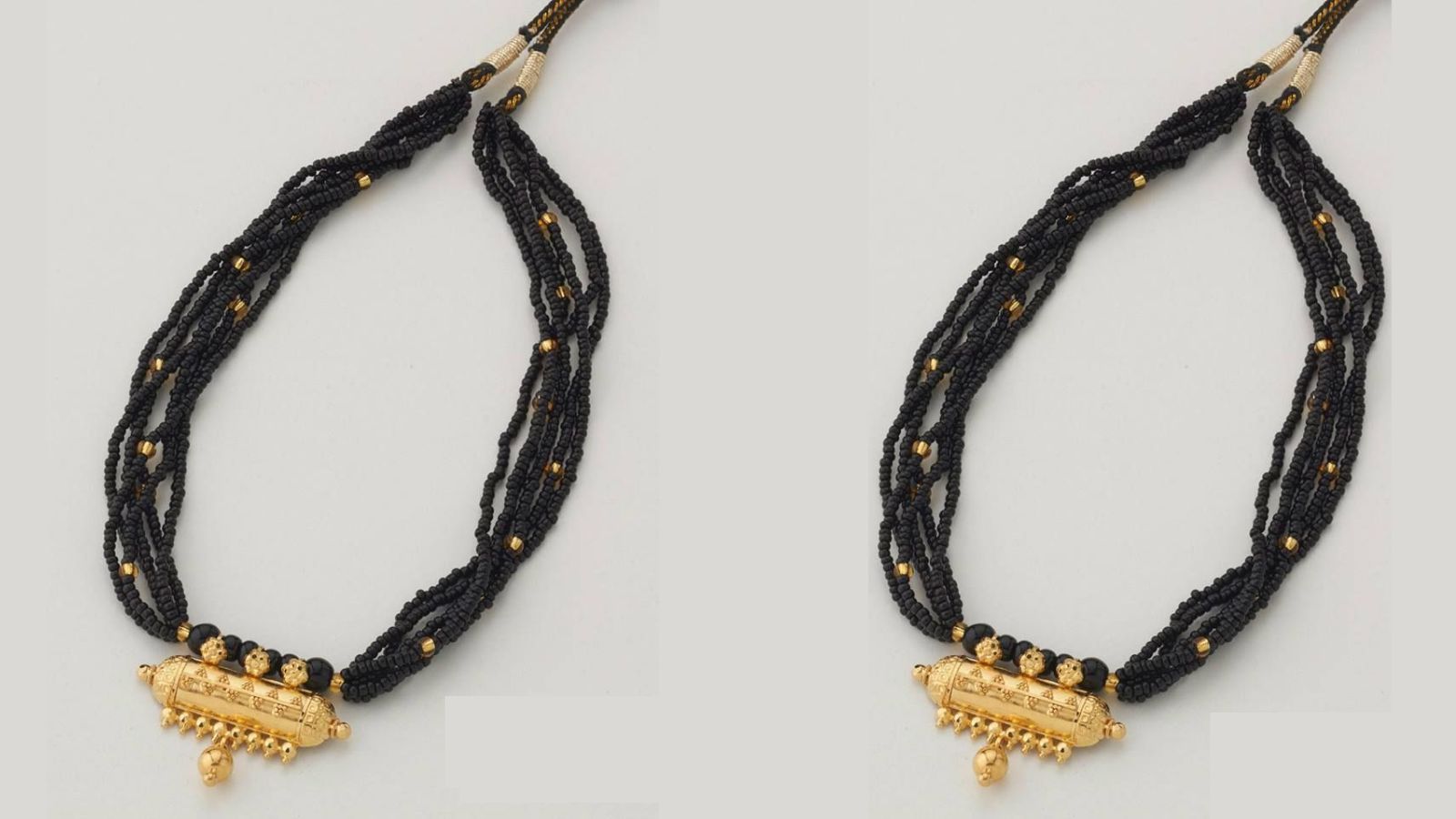मराठी स्टाइल ब्लैक एंड गोल्डन बीड्स मंगलसूत्र