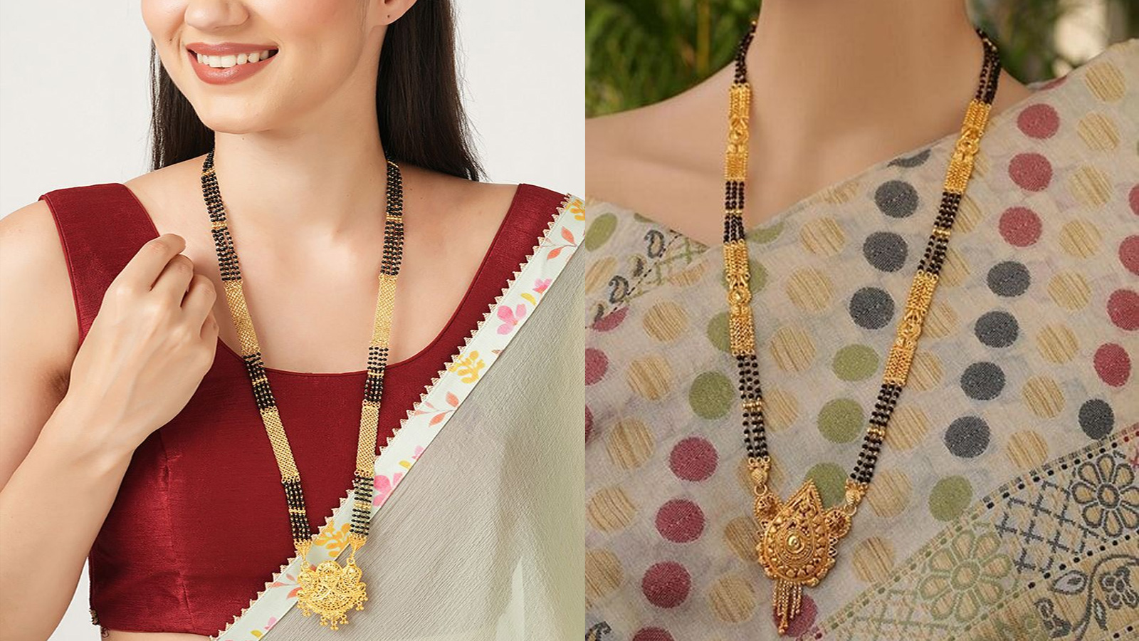 इसमें एक पतली सी चेन होती है जिसमें ब्लैक क्रिस्टल बीड्स इंटरवल पर लगे होते हैं और बीच में स्मॉल गोल्ड पेंडेंट। ये डेली यूज के लिए परफेक्ट हैं। ये साड़ी, कुर्ती, टॉप हर आउटफिट के साथ मैच होंगे। साथ ही इनको पहनकर बहुत हल्का और कंफर्टेबल फील होगा। वर्किंग वूमन के बीच ये सबसे ज्यादा डिमांड में है क्योंकि इसे हर समय पहना जा सकता है।