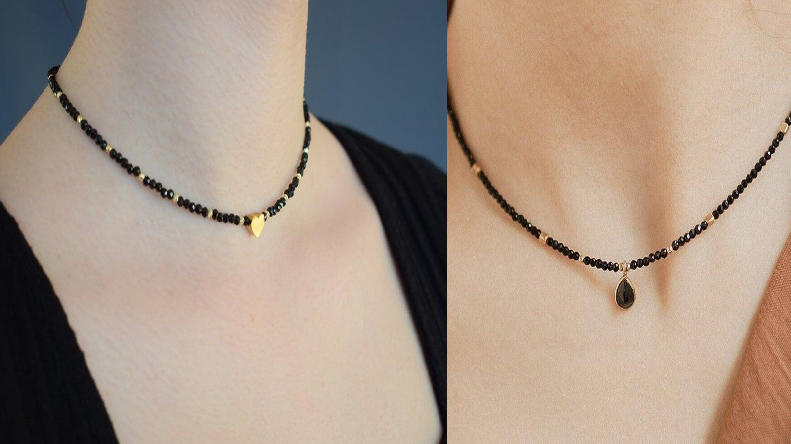 सिंपल ब्लैक मोती से इसे डिजाइन किया जाता है। इसमें ब्लैक बीड्स के साथ बीच-बीच में गोल्ड बीड्स लगाए जाते हैं। ये देखने में काफी क्यूट लगता है। ऑफिस गोइंग वुमन के लिए ये बेस्ट डिजाइंस होते हैं। दाम भी बहुत कम होता है। इसमें सिर्फ गोल्ड बीड्स के ही पैसे लगते हैं तो आप अपने बजट के अनुसार जितने बीड्स लगावने हो वो लगवा कती हैं।