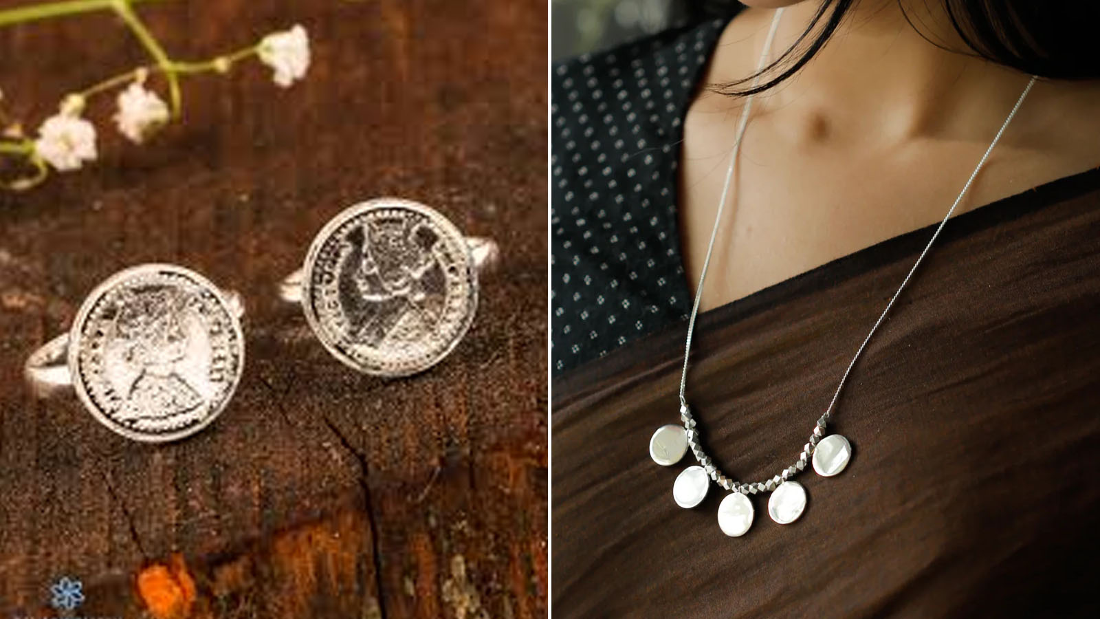 Silver coin jewelry for women: साल 2025 में लड़कियों में सिल्वर कॉइन ज्वेलरी का ट्रेंड बढ़ रहा है। यह ट्रेडिशनल व ट्रेंडी लुक का कॉम्बो है, जो एथनिक और वेस्टर्न दोनों आउटफिट्स पर जंचता है।