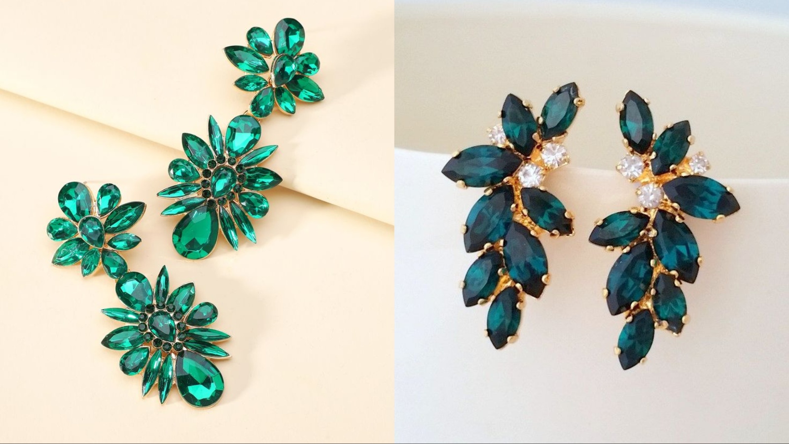 वॉर्डरोब में ग्रीन कलर के इयररिंग्स जरूर होने चाहिए। इन्हें आप पिंक, येलो, पिंक और वाइब्रेंट कलर के आउटफिट के साथ इन्हें कैरी कर सकती है। इसे डार्क ब्लू लीफ शेप क्रिस्टल और गोल्डन नग पर बनाया गया है कि जोकि बहुत प्यारे लग रहे हैं। बाजार में 200 रुपए की रेंज में इस तरह के इयररिंग्स मिल जाएंगे।