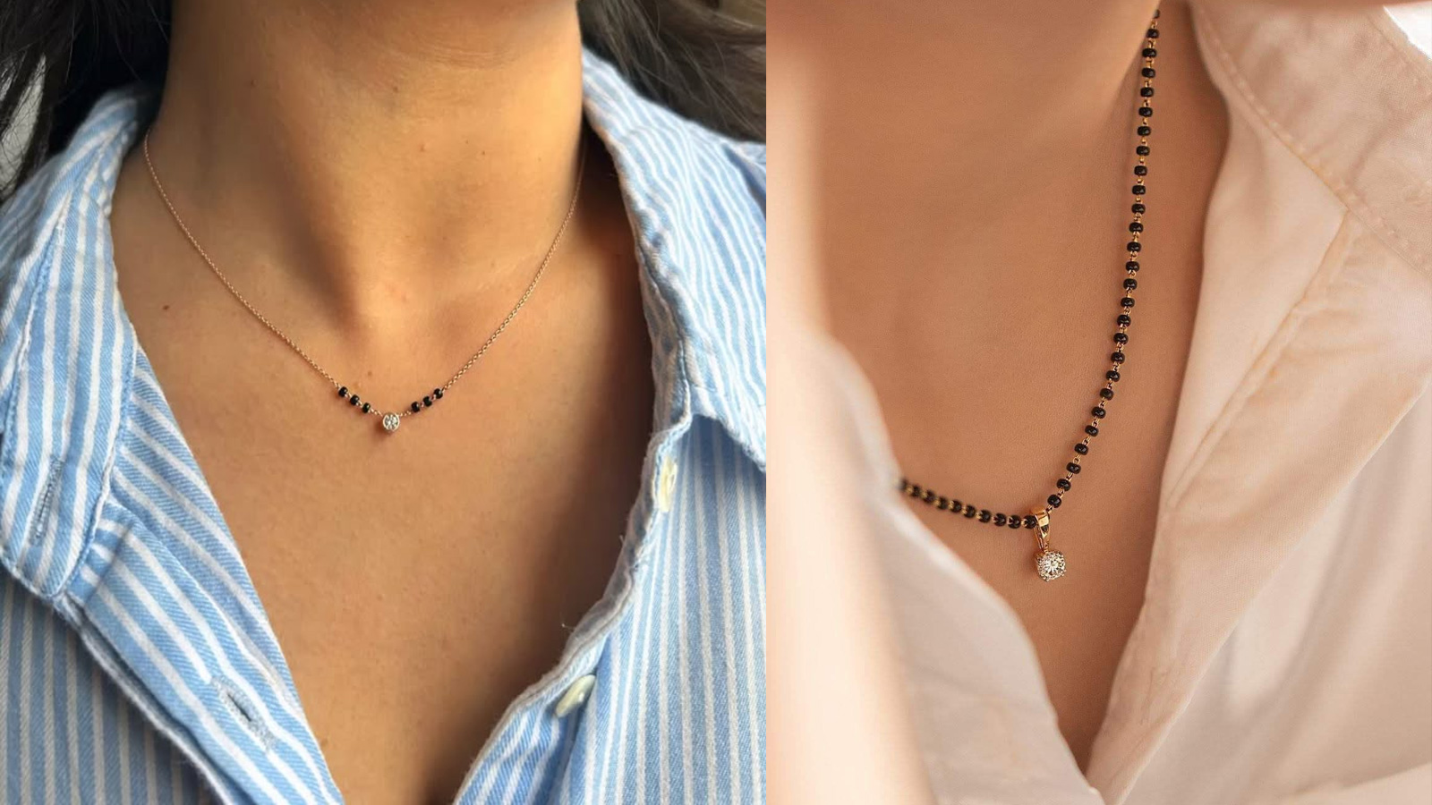 अगर आप ऐसा मंगलसूत्र चाहती हैं जो मॉडर्न भी हो, एलीगेंट भी और हर आउटफिट के साथ मैच करे, तो डायमंड मंगलसूत्र बेस्ट ऑप्शन है। आजकल की महिलाएं हल्के, स्टाइलिश और डेली-वेयरेबल डिजाइन पसंद करती हैं जो ऑफिस, पार्टी और फेस्टिव हर मौके पर सुंदर लगें। यहां हम आपके लिए 5 ट्रेंडी डायमंड मंगलसूत्र डिजाइंस लेकर आए हैं, साथ ही इनकी शानदार प्राइस रेंज भी है ताकि आपकी खरीदारी आसान हो जाएगी।