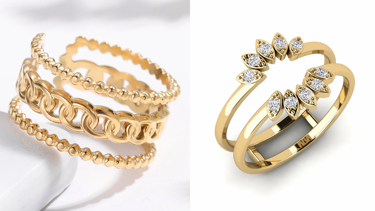 अगर आप ज्वेलरी में कुछ नया और यूनिक ट्राई करना चाहती हैं, तो डबल लेयर रिंग डिजाइंस आपके लिए परफेक्ट ऑप्शन हैं। ये न सिर्फ स्टाइलिश दिखती हैं बल्कि एक ही रिंग में दो का मजा देती हैं। डबल लेयर रिंग को आजकल मॉडर्न लड़कियों से लेकर शादीशुदा महिलाएं भी खूब पसंद कर रही हैं। आइए जानते हैं गोल्ड डबल लेयर रिंग के कुछ शानदार डिजाइंस, जिन्हें पहनकर आपका हाथ दिखेगा और भी रॉयल।