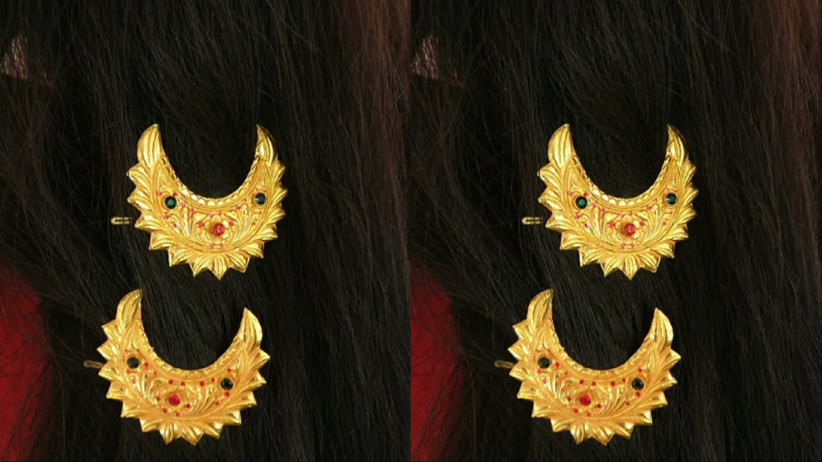 नेपाली दुल्हनों के साथ एक से बढ़कर एक ट्रेडिशनल ज्वेलरी होती है। इन्हीं में से एक है राउंड शेप गोल्ड इयररिंग्स। वैसे तो प्लेन से लेकर भारी डिजाइन में आते हैं लेकिन आप इसमें थोड़ा सा मॉर्डन ट्विस्ट जोड़ते हुए फ्लोरल डिजाइन पर खरीद सकती हैं। ये 5-8 में मिल जाएंगे। अगर ऐसी इयररिंग्स कैरी कर रही हैं तो गले की ज्वेलरी बिल्कुल मिनिमल रखें। वरना लुक खिलकर नहीं आएगा।