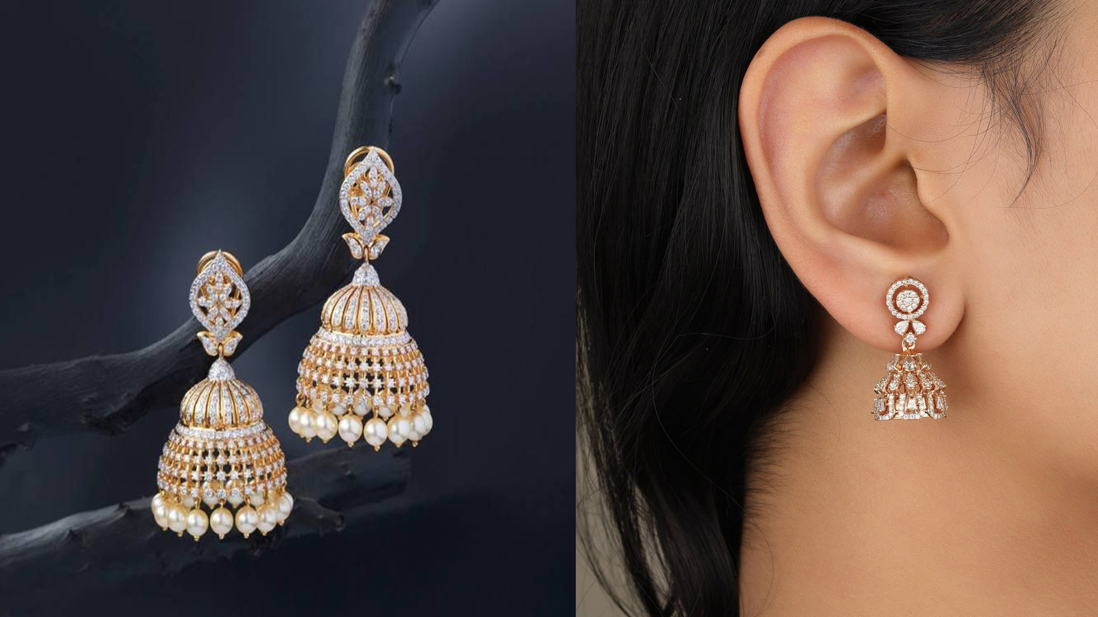 पारंपरिक झूमके में जब डायमंड जुड़ जाएं तो वो और भी रॉयल लगते हैं। 1 ग्राम में आप इस तरह के गोल्ड में डायमंड लगे इयररिंग्स खरीद सकती हैं। आप चाहें तो इसमें पर्ल को भी ऐड करा सकती हैं।साड़ी -सूट के साथ आप इसे पहन सकती हैं।