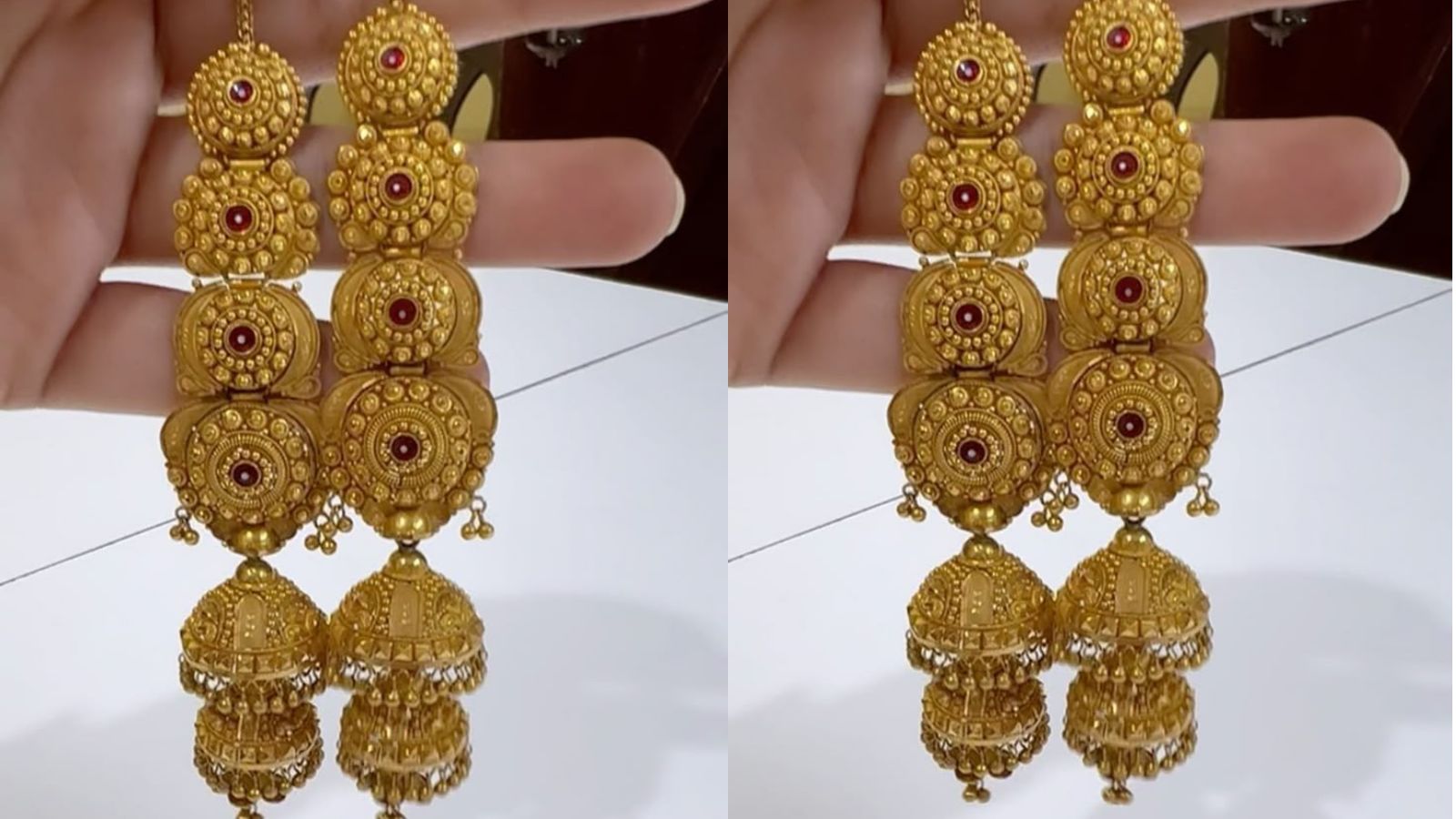 कनचेन झुमका इयररिंग की ये डिजाइन आप तीन या फिर दो या एक महल झुमका के साथ भी बनवा सकती हैं। झुमके के साइज और लंबाई-चौड़ाई से कनचेन इयररिंग का वेट बढ़ेगा, इसलिए आप इसे अपने सुनार से परामर्श लेकर ही बनवाएं कि आपके बजट के वेट में किस तरह का कनचेन वाला झुमका सही रहेगा।