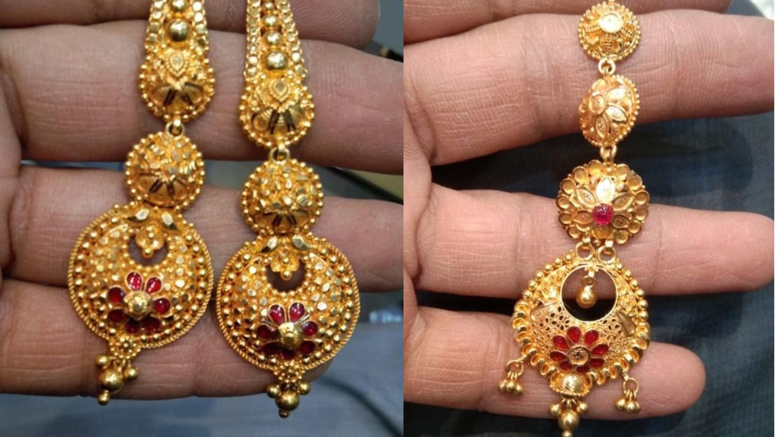 सोने की महंगाई हर दिन बढ़ रही है और अब तो दाम एक लाख तक पहुंच गया है। भले ही सोने का दाम कितना भी बढ़ जाए, लेकिन औरतों के सोने पहनने का शौक कभी पूरा नहीं होगा। उन्हें कभी न कभी ये लगते रहेगा कि उनके पास ये डिजाइन का जूलरी तो होना ही चाहिए। ऐसे में इस बढ़ते महंगाई के बावजूद भी हम आपके लिए सोने के इयररिंग की कुछ शानदार डिजाइन लेकर आए हैं। इस डिजाइन में हम आपको सोने के कनचेन इयररिंग्स की कुछ डिजाइन दिखाएंगे, जो गोल्ड के हैं और 1.5-2 तोले में बनकर आपके चांद से मुखड़े को सजा देंगे।