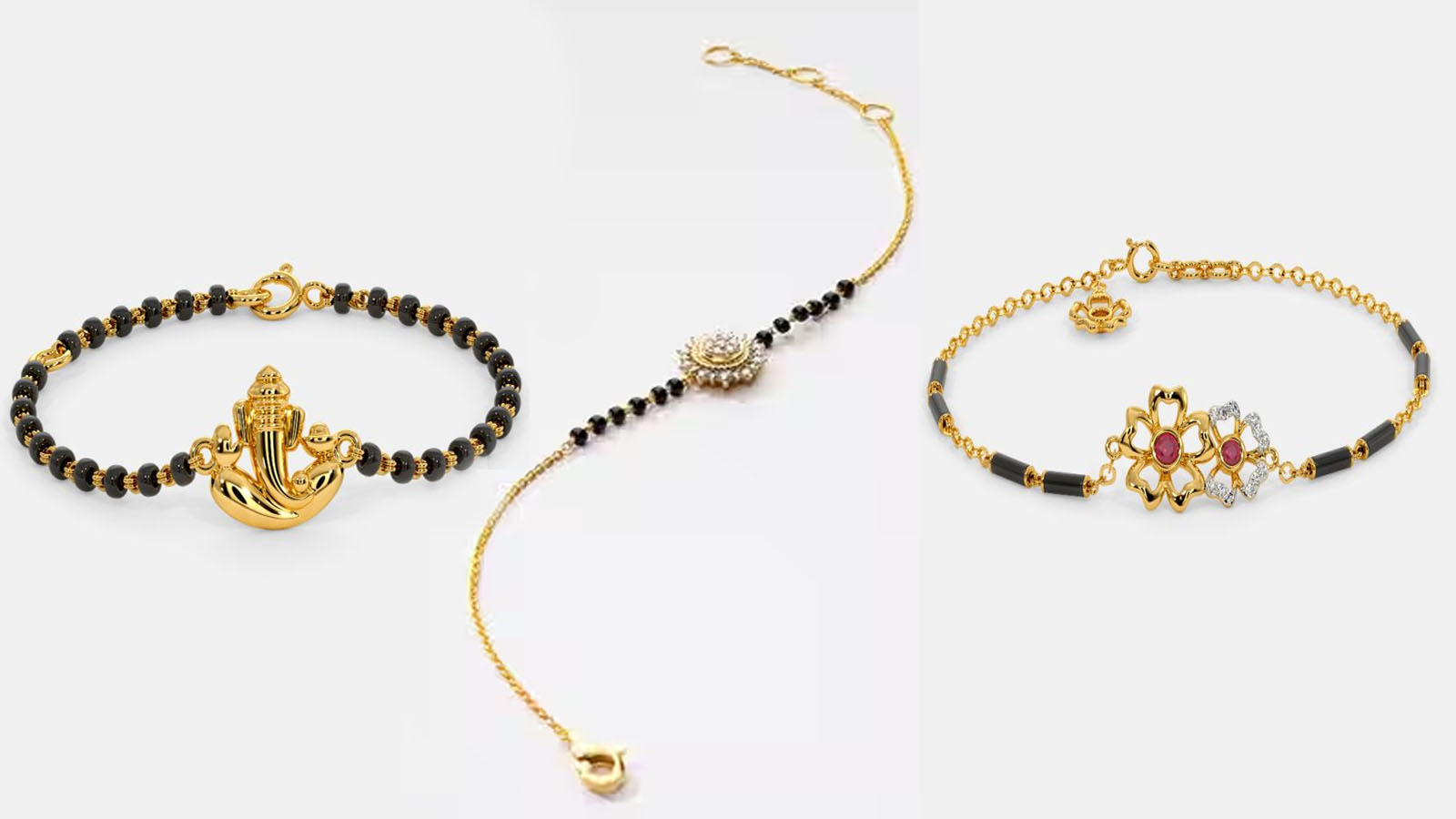 इस डिजाइन में गोल्ड का सर्कल चार्म पेंडेंट (Circle Charm) होता है और उसके दोनों तरफ ब्लैक बीड्स लगे होते हैं। यह डिजाइन बहुत मॉडर्न और ट्रेंडी लगता है। इस तरह के डिजाइन मां और बेटी दोनों की कलाई पर बहुत की क्लासिक लगेंगे।