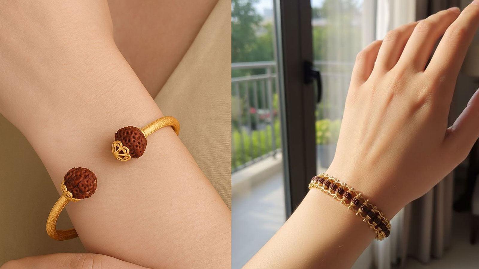 Rudraksha Bracelet: शिव भक्तों के लिए खास! जानें 5 ग्राम में बनने वाले गोल्ड रुद्राक्ष ब्रेसलेट के लेटेस्ट डिजाइन- डबल लेयर, कड़ा, चेन और ब्लैक रुद्राक्ष स्टाइल जो देंगे आध्यात्मिक और मॉडर्न लुक।