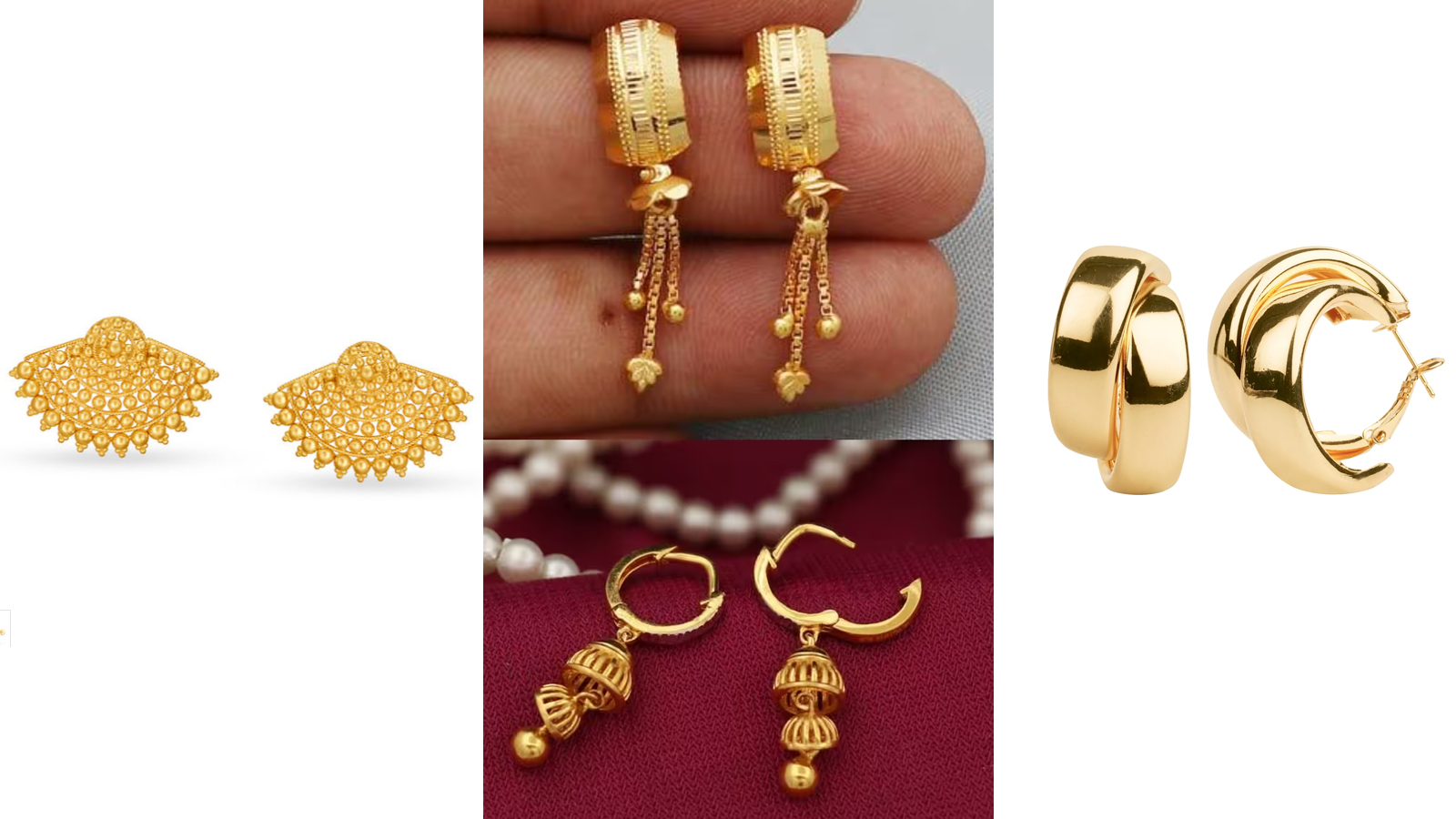 गोल्ड टॉप्स स्टड इयररिंग्स हर उम्र की महिलाओं की पसंद होती हैं, क्योंकि ये छोटे, एलिगेंट और हर आउटफिट के साथ मैच होने वाले होते हैं। चाहे डेली वियर हो, ऑफिस लुक, पार्टी या वेडिंग फंक्शन, स्टड इयररिंग्स हमेशा क्लासी लगते हैं। खासकर CaratLane और Swarovski स्टाइल के डिजाइंस आजकल काफी ट्रेंड में हैं, जिनमें हल्की शाइन और प्रीमियम फिनिश मिलती है। यहां देखें लेटेस्ट गोल्ड 10 डिजाइंस।