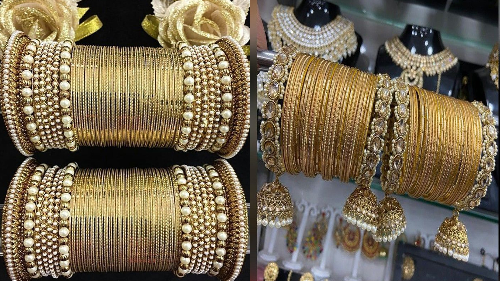 मेटल चूड़ियां अपनी टिकाऊ बनावट और खूबसूरत डिजाइनों के लिए जानी जाती हैं। इन्हें आप साड़ी, सूट या लहंगे के साथ स्टाइल कर सकती हैं। मेटल चूड़ियों के साथ पर्ल कंगन जोड़कर लुक को और भी एलीगेंट बना सकती हैं। कीमत की बात करें तो सिंपल मेटल चूड़ियां लगभग 50 रुपए दर्जन, जबकि डिजाइनर गोल्डन चूड़ियां 100 रुपए दर्जन में मिल जाती हैं।
