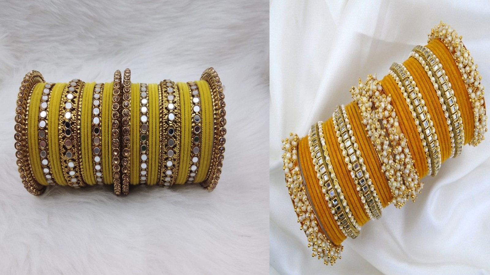 वेलवेट चूड़ियां गोल्डन के कई शेड्स में मिलती हैं और सटल लुक देती हैं। अगर आपको चमकदार चूड़ियां नहीं पसंद, तो यह बेहतर विकल्प है। हालांकि ये रोजमर्रा में नहीं पहन सकते, क्योंकि पानी से खराब हो जाती हैं। त्योहारों और खास मौकों पर आप इन्हें कंगन के साथ स्टाइल कर सकती हैं। दाम की बात करें तो गोल्डन वेलवेट चूड़ी भी आपको 80 रुपए दर्जन मार्केट से मिल जाएंगी। आप ऑनलाइन भी ले सकती हैं। अपने पसंद के अनुसार चूड़ियों के बीच-बीच में मिरर वर्क, पर्ल वर्क या फिर कुंदन वर्क कंगन डालकर पहन सकती हैं।