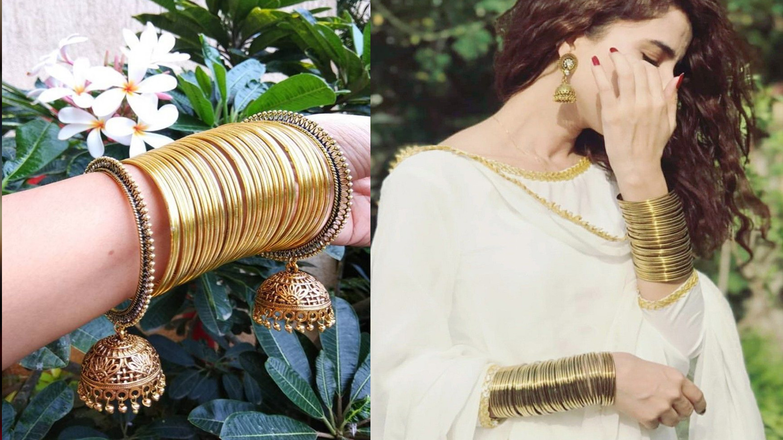 Golden chudi Designs:सावन में ग्रीन साड़ी-सूट के साथ गोल्डन चूड़ियां पहनकर कॉन्ट्रास्ट लुक पा सकती हैं। यहां पर हम कुछ डिजाइंस दिखाने जा रहे हैं जिसे आप अपनी पसंद के अनुसार बाजार से या फिर शॉपिंग साइट से खरीद सकती हैं।