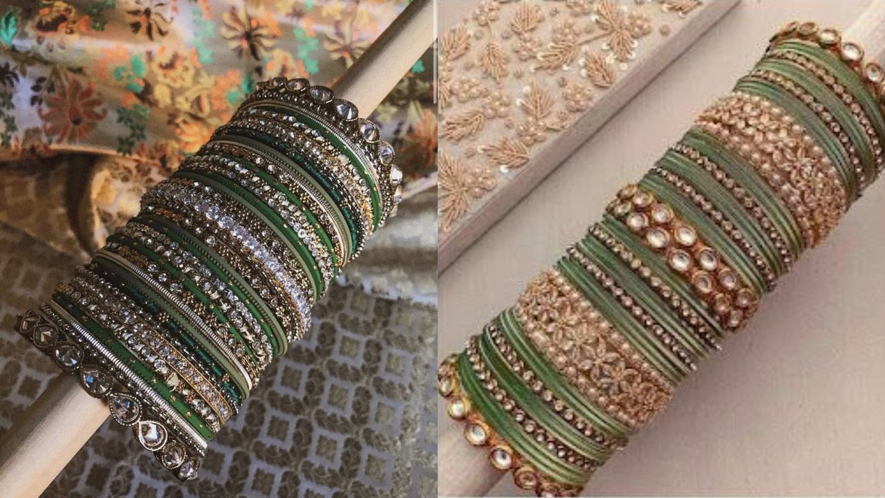 अगर आपको डार्क ग्रीन कलर में बैंगल सेट नहीं पसंद तो आप इस तरह के लाइट कलर में सेट ले सकते हैं। लाइट पिस्ता कलर के साथ आप चाहें तो डार्क चूड़ियां भी सेट कर सकती हैं। बैंगल सेट के साथ कुंदन के हैवी और सिंपल कंगन शानदार लगेंगे।