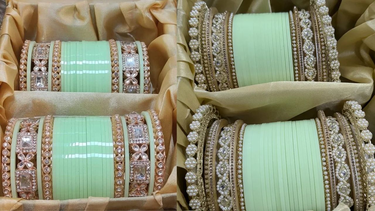 लाइट कलर की चूड़ियां पसंद हो या फिर डार्क ग्रीन कलर की पंजाबी चूड़ा नहीं पसंद आ रहा है, तो ये डिजाइन परफेक्ट है। सावन में अगर आप डार्क ग्रीन कलर की साड़ी, लहंगा या फिर सूट पहन रहे हैं, तो ये मिंट ग्रीन या लाइट शेड में पंजाबी चूड़ा बहुत स्टाइलिश और क्लासी लगेगा।