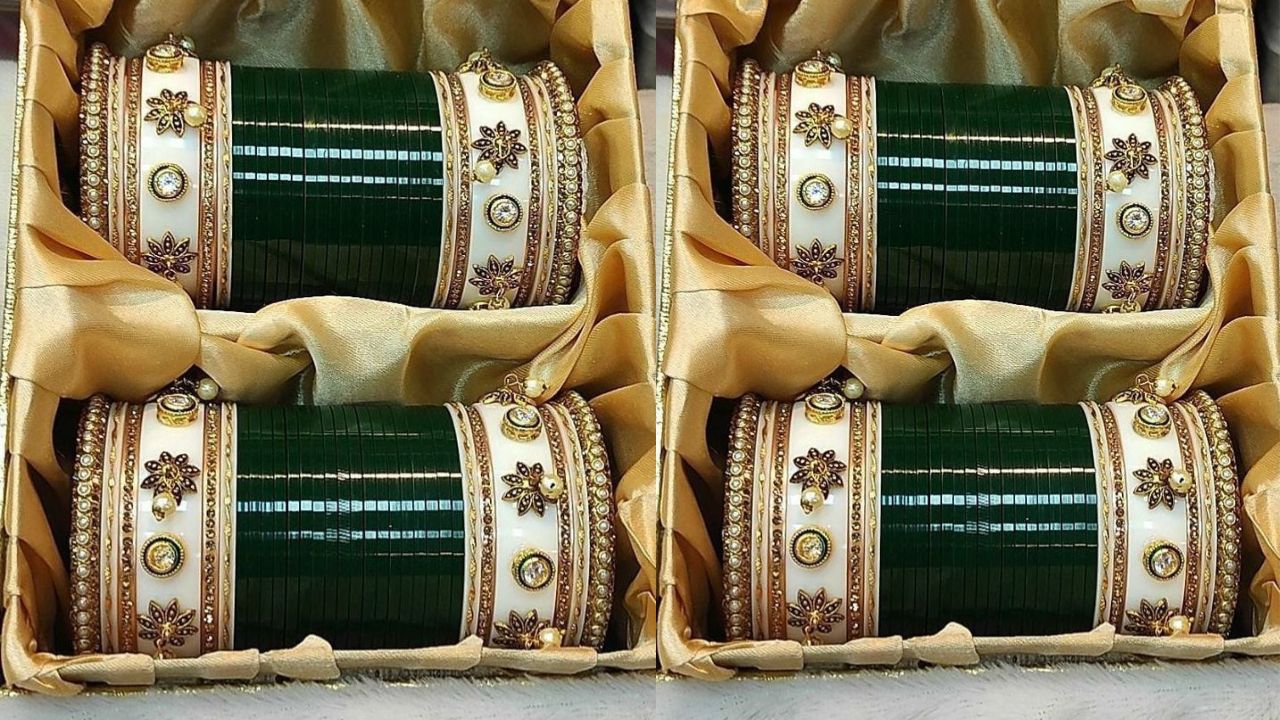 सिंपल और प्लेन पंजाबी चूड़ा की ये ग्रीन शेड डेली वियर या फिर कम बजट के हिसाब से बढ़िया है। इसमें किसी तरह के हैवी स्टोन या वर्क नहीं है, ये सिंपल चूड़ा है, जिसे वर्किंग वुमन भी पहन सकती हैं।