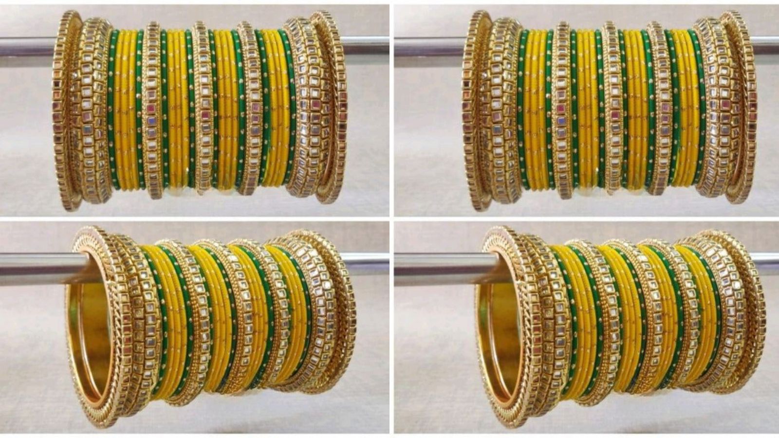 हरे-पीले ब्राइडल बैंगल सेट (Green-Yellow Bridal Bangle Set)