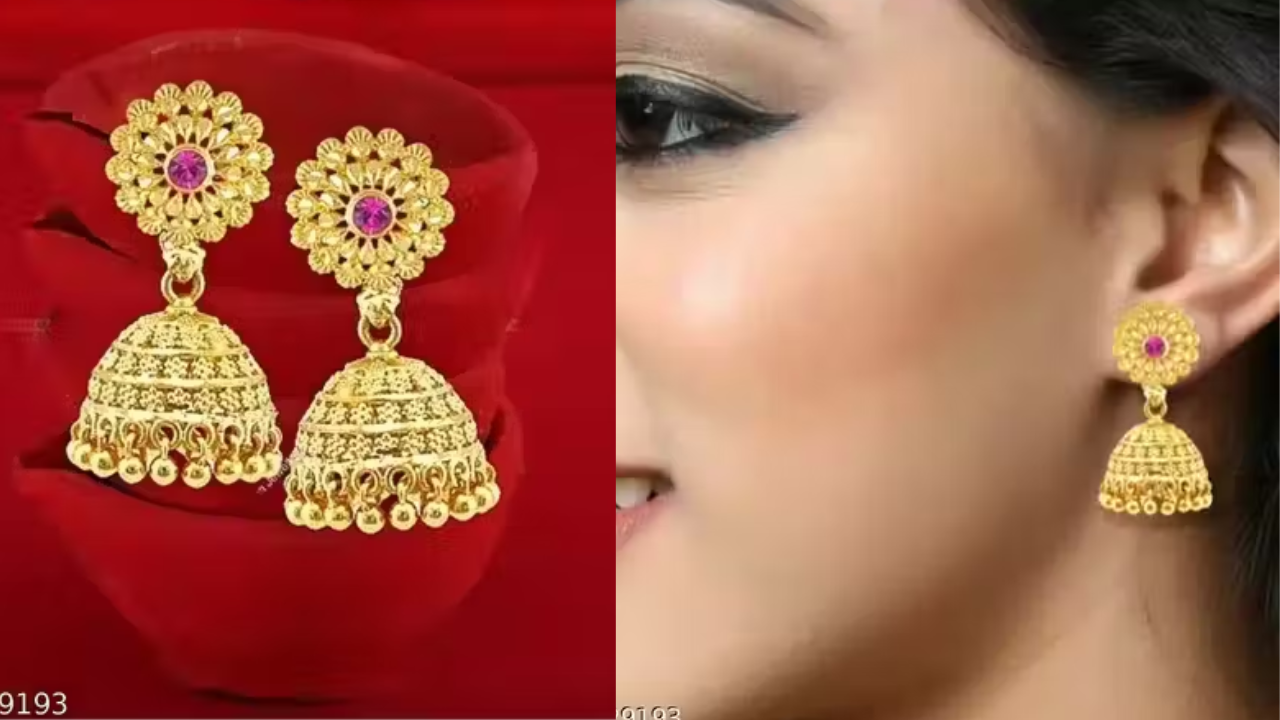 हैवी और हल्की साड़ी के साथ छोटे आकार में आने वाले ऐसे गोल्ड प्लेटेड झुमका इयररिंग्स कमाल का लुक देंगे। इसे स्टड स्टाइल में बनाया गया है, जहां फ्लोरल वर्क एक ही नजर में पसंद आ जाएगी। बीच में लगा गुलाबी रंग का नग इंग्रेविंग कर्विंग बीड्स संग कमाल का लुक दे रहा है। आमतौर पर ऐसे इयररिंग्स क्लॉस्प हुक पर आते हैं, जिसे आसानी से खोला और बंद किया जा सकता है। यह इयररिंग्स मीशो पर मात्र 118 रुपए में मौजूद हैं।