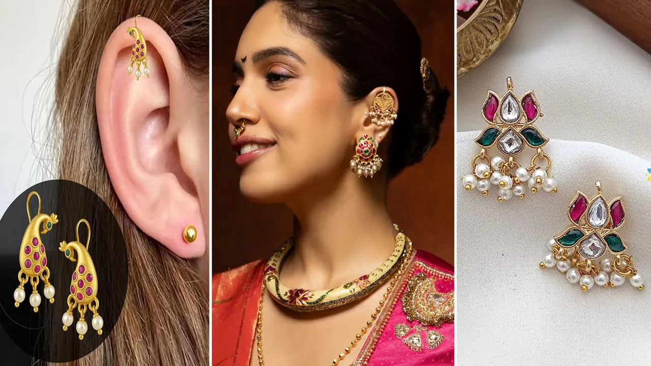 इंडियन ट्रेडिशनल जूलरी में बुगाडी (Bugadi) का खास स्थान है। यह खासतौर पर Maharashtra की पारंपरिक जूलरी का हिस्सा माना जाता है। बुगाडी कान के ऊपरी हिस्से (हेलिक्स) में पहनी जाने वाली छोटी और खूबसूरत इयररिंग होती है, जो पारंपरिक मराठी लुक को पूरा करती है। आजकल बुगाडी डिजाइन सिर्फ पारंपरिक रूप में ही नहीं बल्कि 1 ग्राम गोल्ड में हल्के और मॉडर्न स्टाइल में भी बनाए जा रहे हैं। लाइटवेट होने के कारण इन्हें रोजाना पहनना भी आसान होता है। आइए जानते हैं ऐसे 7 खूबसूरत बुगाडी डिजाइन जो हल्के गोल्ड में भी बेहद अट्रैक्टिव लगते हैं।