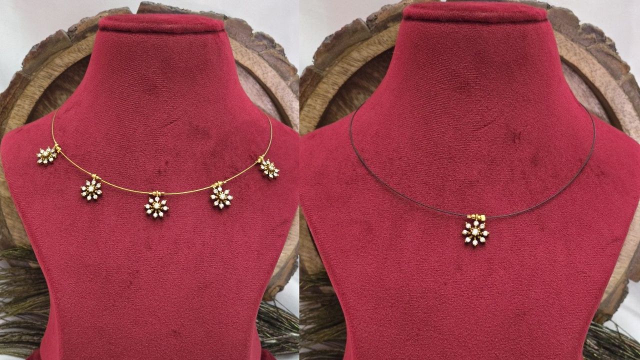 इनविजिबल चेन नेकलेस भी आजकल काफी ट्रेंड में है, अगर आपको सिंपल, सोबर और क्लासी नेकलेस चाहिए, तो इस तरह के डिजाइन वाले नेकलेस ले सकती हैं। ओणम से दिवाली तक हर फंक्शन में ये आपकी सुंदरता को बढ़ाने में मदद करेगी। इसमें आपको लोटस पैटर्न के अलावा लीफ और फ्लोरल समेत कई डिजाइन में मिल जाएगी।
