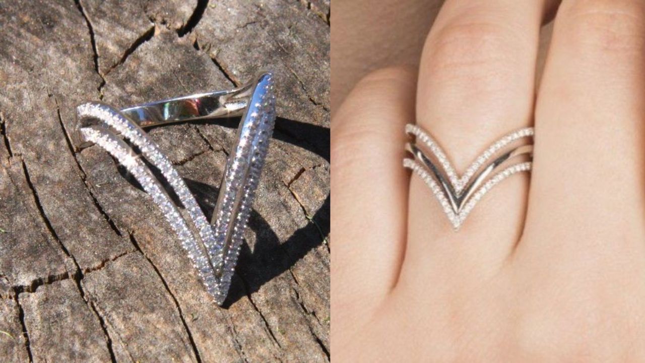 वी शेप में प्लैटिनम रिंग की ये डिजाइन भी बेहद लाजवाब है। आजकल वी शेप या वानकी रिंग काफी पसंद की जा रही है। कहा जाता है कि वानकी रिंग का अध्यात्म से गहरा कनेक्शन है, तो इसलिए अगर प्लैटिनम में रिंग ले रही हैं, तो इस डिजाइन के लिए जा सकती हैं।