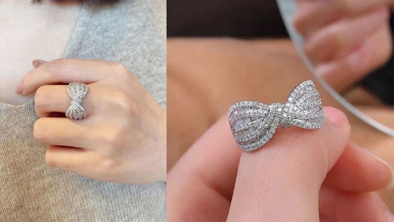 बो पैटर्न में ईशा अंबानी के क्लच बैग ही नहीं प्लैटिनम रिंग भी मार्केट में ट्रेंड कर रहे हैं। बेहतरीन डायमंड या फिर आप चाहें तो कम बजट में लैब ग्रोन डायमंड या अमेरिकन डायमंड इस तरह के रिंग में लगवा सकती हैं। बो स्टाइल में ये बेहतरीन रिंग डिजाइन हर किसी को पसंद आएगा और अगर राखी के लिए गिफ्ट का सोच रहे हैं तो ये डिजाइन परफेक्ट है।