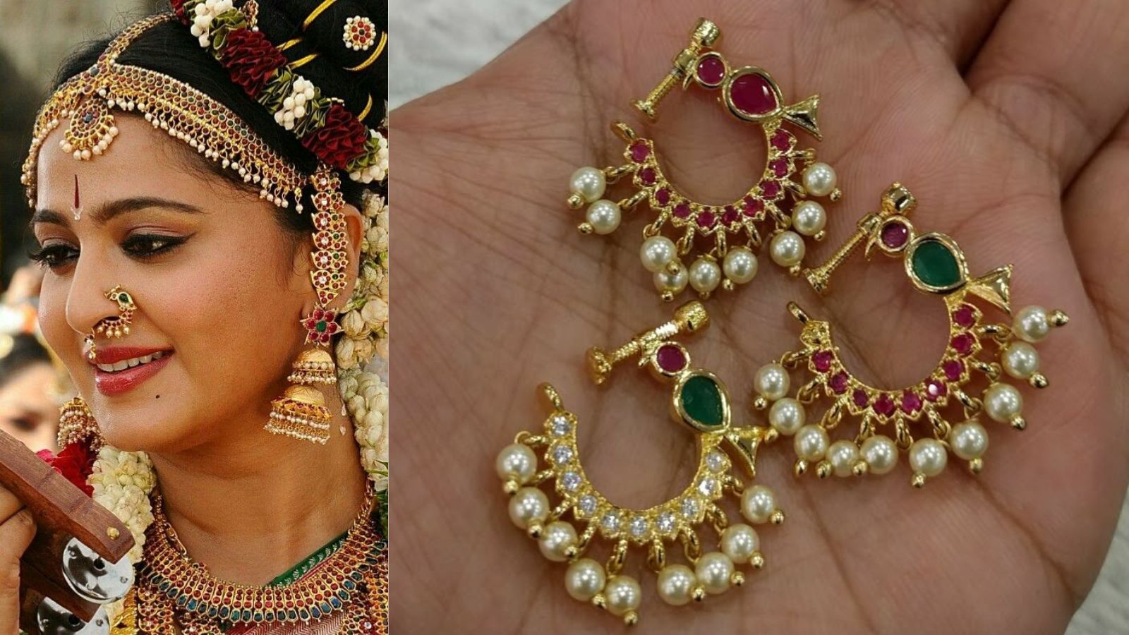 साउथ इंडियन ज्वेलरी की डिजाइन नॉर्थ इंडिया के जूलरी डिजाइन से काफी अलग होती है। यहां आपको जड़ाऊ, एंटीक और टेंपल जूलरी डिजाइन के जूलरी मिल जाएगी। साउथ इंडियन ब्राइड हो या महिलाएं वो काफी सुंदर-सुंदर नोज पिन और नोज रिंग पहनते हैं। नोज रिंग की ये डिजाइन बहुत शानदार है और इसमें गुलाबी और हरे रंग के नग का काम है, साथ ही पर्ल का वर्क इसकी सुंदरता को बढ़ा रही है।