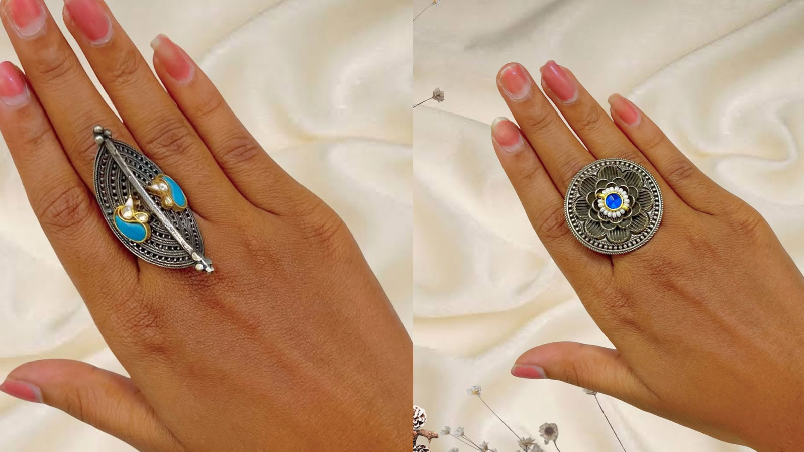 खास मौके के लिए ऑक्सीडाइज्ड फ्यूजन रिंग्स भी लड़कियों की पसंद की लिस्ट में शामिल है। बड़े साइज की ऑक्सीडाइज्ड रिंग्स साड़ी और सूट के साथ काफी खूबसूरत लगती है।