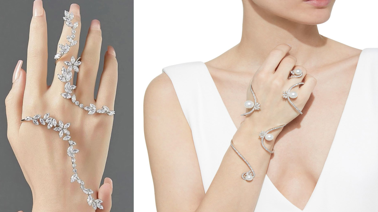 यहां पाम कफ के दो खूबसूरत डिज़ाइन दिए गए हैं। एडी डायमंड से सजा यह पाम कफ रिंग से शुरू होकर पाम को कवर करते हुए नीचे तक जाता है। एक डिज़ाइन में फ्लावर और लीफ कट का पैटर्न है, वहीं दूसरे डिजाइन में नग के साथ पर्ल जोड़े गए हैं। दोनों ही डिज़ाइन बेहद प्यारे और स्टाइलिश हैं। इन्हें आप ऑनलाइन साइट्स से 1000 रुपये के अंदर खरीद सकती हैं, साथ ही चाहें तो रियल डायमंड में कस्टमाइज भी करा सकती हैं।