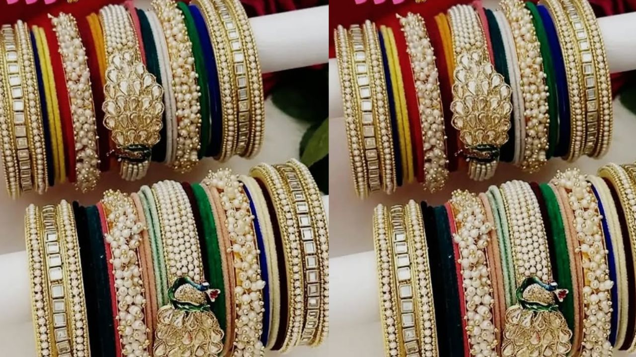 अगर आप थोड़ा मॉडर्न और ग्लैमरस टच चाहती हैं, तो स्टोन जड़ा चूड़ा चुनें। ये जॉर्जेट या नेट सूट के साथ खूब मैच होंगे। शाम की होली पार्टी में इन्हें पहनकर आपको अलग लुक ही मिलेगा।