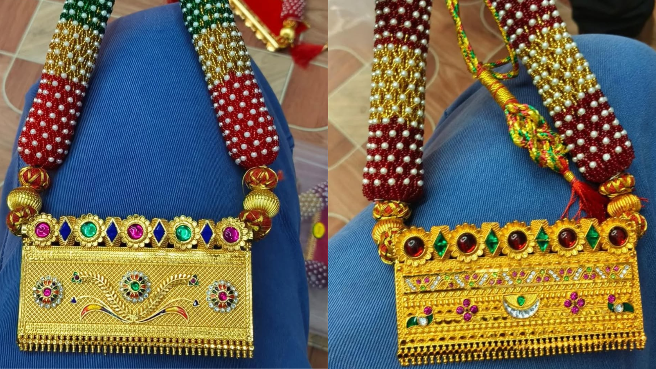 Rajputi Tevta Design: सोने के मंगलसूत्र या गोल्ड चेन लॉकेट में नई डिजाइन ढूंढ रही हैं तो इस बार ट्रेडिशन चुनते हुए काले मोती माले पर पहनें राजपूती तेवता डिजाइन जो राजस्थानी शान के साथ महारानी वाला फील में कमी नहीं रखेगा।