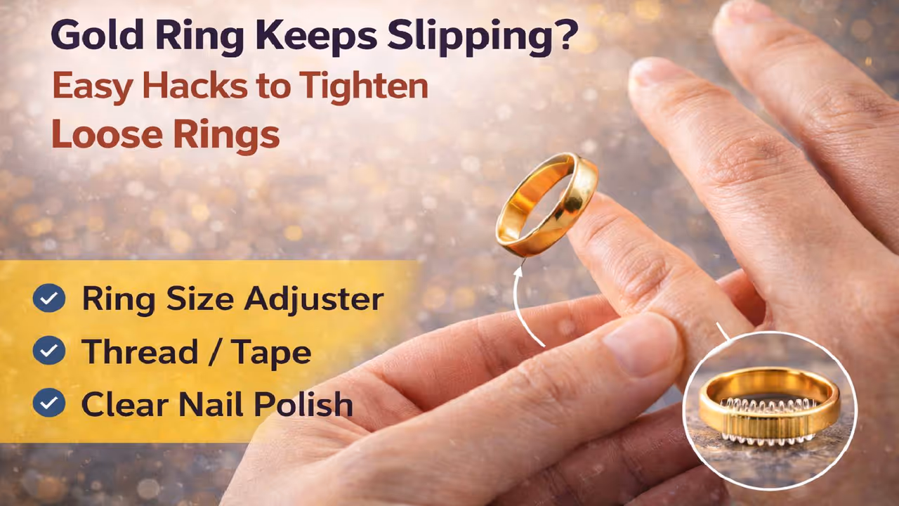 अगर आप रोज अंगूठी पहनते हैं, तो सबसे अच्छा समाधान यह है कि किसी अच्छे ज्वेलर से उसका साइज थोड़ा टाइट करवा लें। यह एक सुरक्षित, लंबे समय तक चलने वाला और प्रोफेशनल समाधान है, खासकर महंगी ज्वेलरी के लिए।