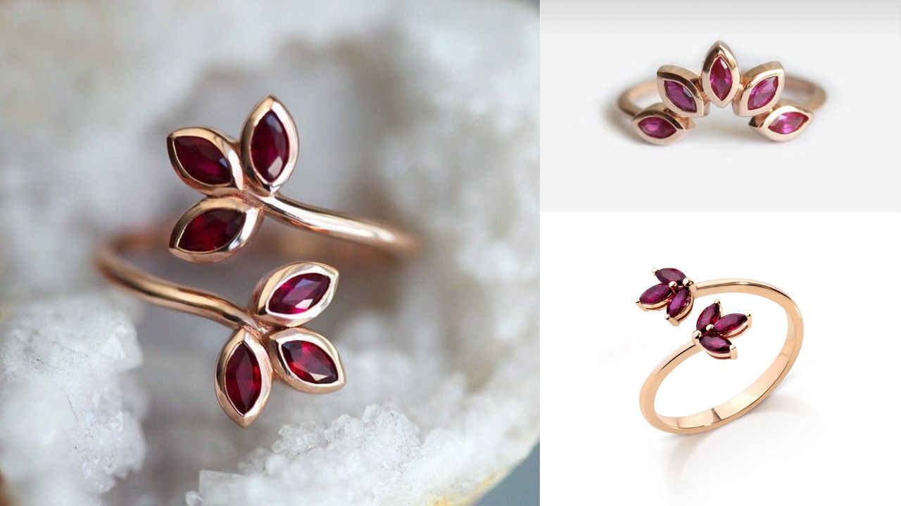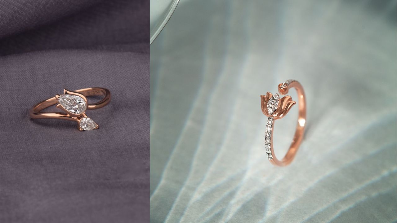 फ्लावर डिजाइन में ये रिंग भी काफी प्यारी है। किसी को गिफ्ट करने के लिए हो या फिर खुद के पहनने के लिए इस तरह एक फ्लावर डिजाइन में रोज गोल्ड रिंग ले सकते हैं। पहनने पर ये उंगलियों की सुंदरता और चमक दोनों को बढ़ा देगी। इस तरह के और भी डिजाइन आपको आसानी से मिल जाएंगे।