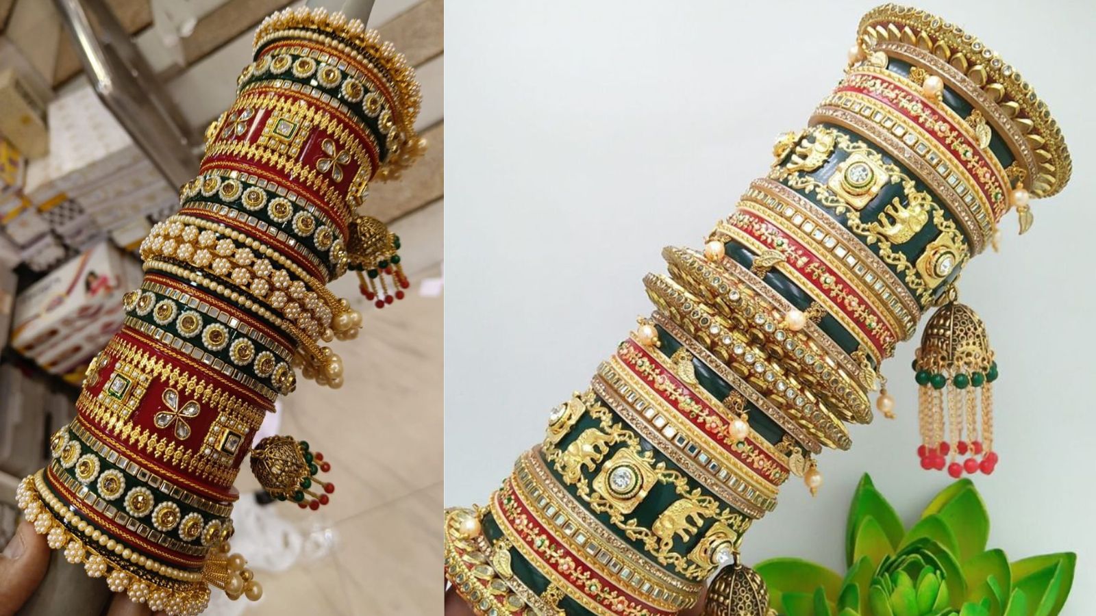 नई दुल्हन हो या फिर चूड़ियां पहनने की शौकीन या फिर राजस्थानी चूड़ी पहनना पसंद है, तो आप इस तरह के खूबसूरत ग्रीन बैंगल का सेट अपने लिए ले सकती हैं। ग्रीन और रेड कलर में ये हैवी रजवाड़ी सेट बहुत क्लासी और स्टाइलिश है। इस तरह के सेट को आप हरियाली तीज या फिर हरियाली महोत्सव में पहन सकती हैं।