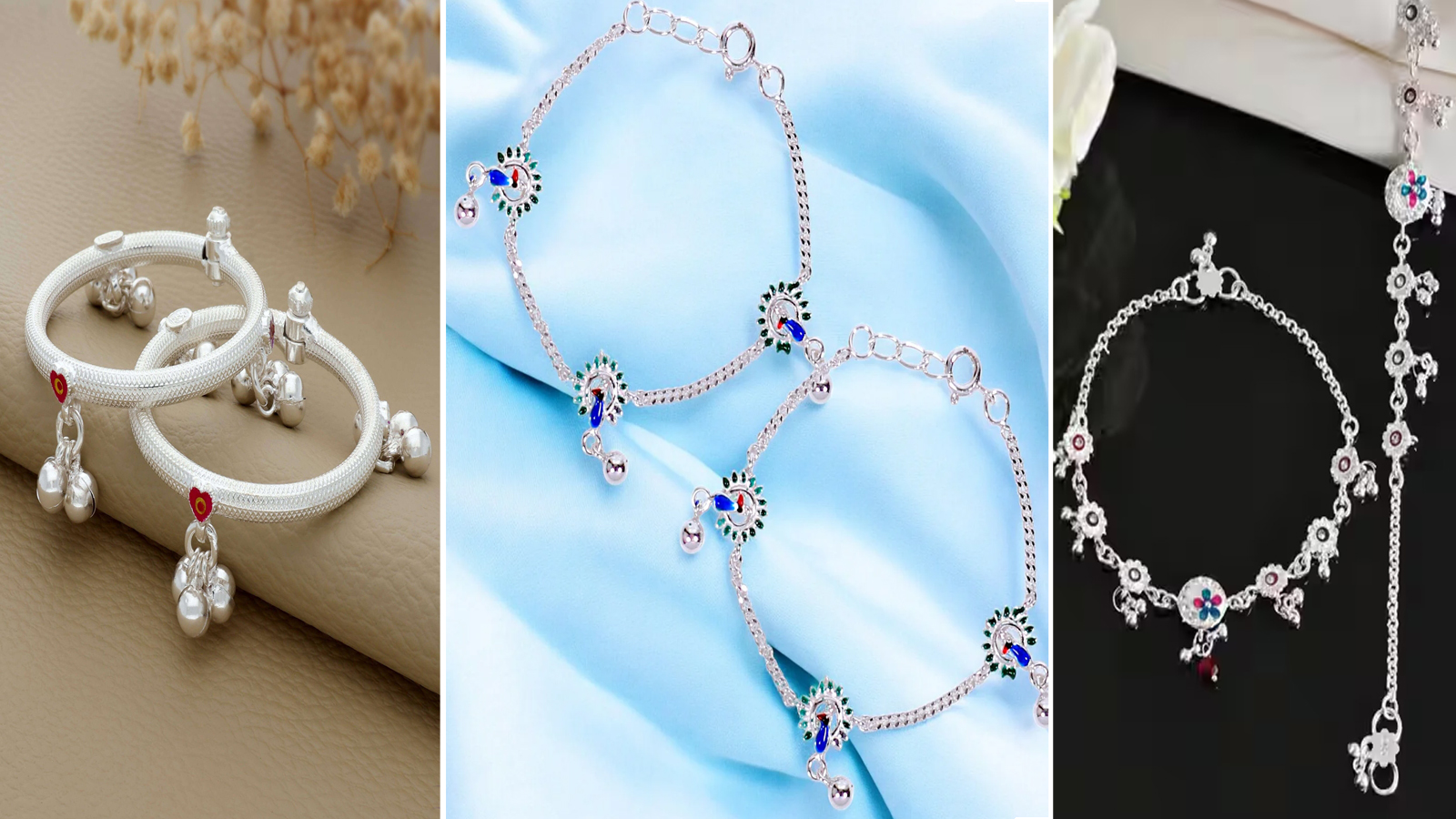 2+ साल की बेबी गर्ल के लिए सिल्वर एंकलेट सबसे प्यारी और प्रैक्टिकल जूलरी मानी जाती है। चांदी हल्की होती है, स्किन-फ्रेंडली होती है और बच्चों के लिए पूरी तरह सुरक्षित भी। खास बात छोटी बच्चियों पर शाइनी, मिनिमल और क्यूट चार्म वाली पायल हमेशा सुंदर लगती है और किसी भी फेस्टिव कैजुअल ड्रेस के साथ मैच हो जाती है। यहां आपके लिए 10 यूनिक और ट्रेंडी सिल्वर एंकलेट डिजाइन दिए जा रहे हैं, जो खास तौर पर बेबी गर्ल को ध्यान में रखकर चुने गए हैं।