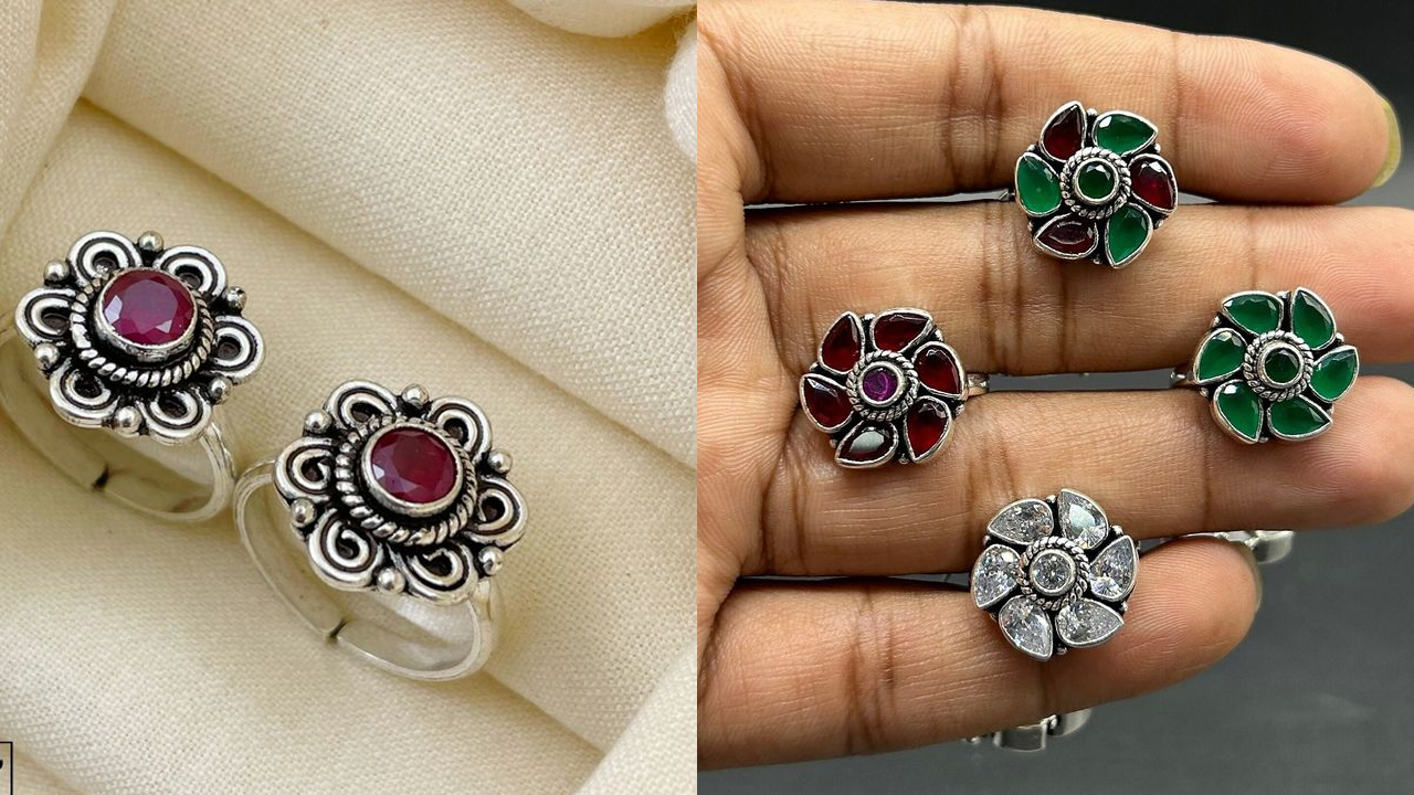 अगर आपके पैरों की उंगलियां लंबी है, तो इसमें राउंड शेप की बड़ी सी फ्लोरल डिजाइन की बिछिया बेहद ही खूबसूरत लगेगी। इसे ऑक्सिडाइज सिल्वर में बनाया गया है। इसमें आप बीच में ग्रीन स्टोन वाली डिजाइन भी चुन सकती है। ये आसानी से ऑनलाइन या ऑफलाइन आपको 500 से ₹700 में मिल जाएगी।