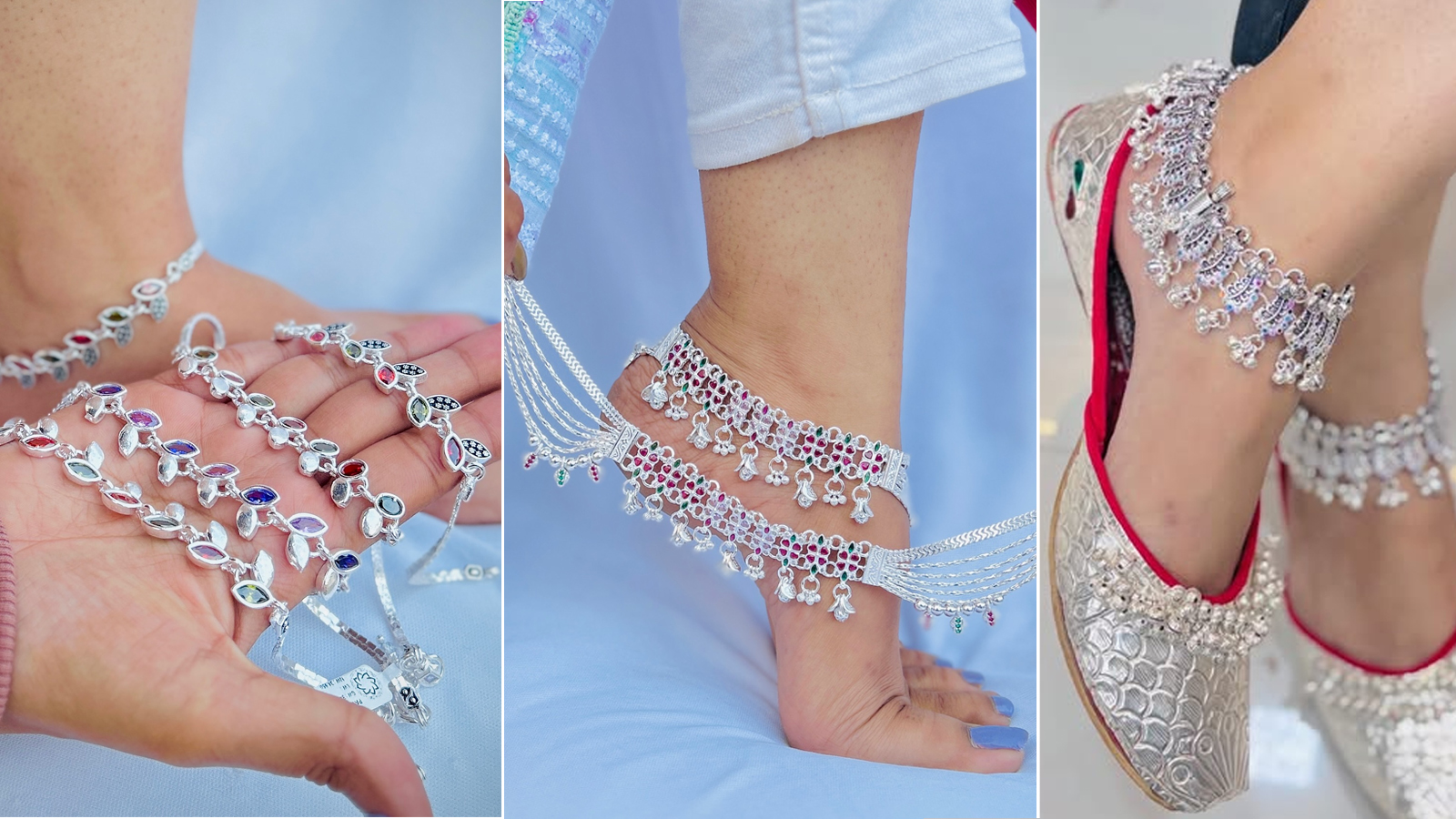 हरियाली तीज(Hariyali Teej 2025) का त्योहार महिलाओं के लिए सोलह सिंगार का प्रतीक होता है। हरे रंग की चूड़ियां, मेहंदी, झूले और ट्रेडिशनल एथनिक वियर के साथ पायल (Payal Designs) भी सजने-संवरने का अहम हिस्सा है। खासकर मीना वर्क वाली सिल्वर पायल, जो आपके पैरों को शाही टच देती हैं। यहां हम बता रहे हैं 5 बेस्ट मीना सिल्वर पायल डिजाइंस, जिन्हें पहनकर आपकी तीज पूजा की तैयारी कंप्लीट हो जाएगी और आपकी सहेलियां भी आपके पैरों को देखकर तारीफ किए बिना नहीं रह पाएंगी।