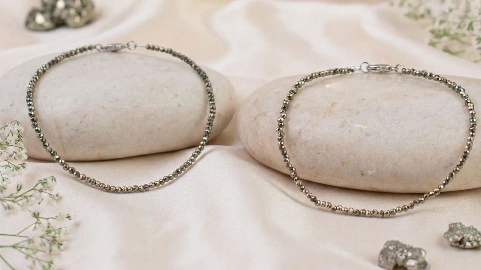 मिनिमल गोल्डन पाइराइट बीड एंकलेट