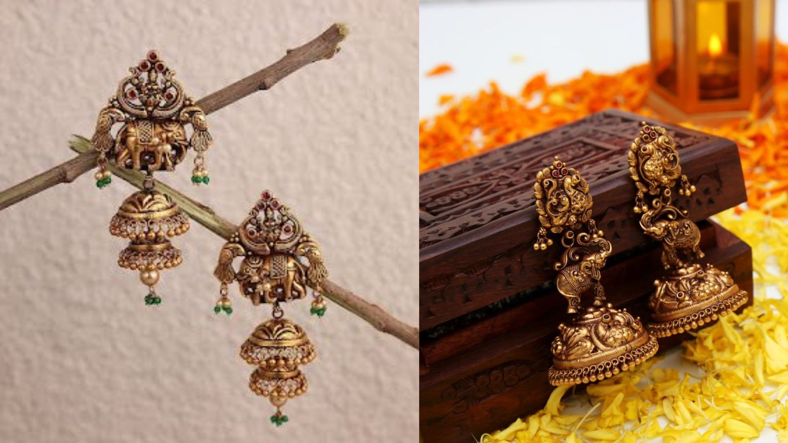 क्लासिक लुक में घोलना है चार्म तो पहनें साउथ इंडिय टेंपल पैटर्न के इयररिंग, सावन, राखी और तीज में दिखेंगी सबसे सुंदर। आजकल फ्यूजन फैशन का ट्रेंड चल रहा है, जिसमें अगर आप कुछ यूनिक पहनना चाहते हैं, जो परंपरा की खुशबू और रॉयल फील दोनों दे, तो साउथ इंडियन टेंपल इयररिंग की ये डिजाइन बढ़ाएगी आपकी सुंदरता। टेंपल डिजाइन में झुमका की ये डिजाइन न सिर्फ जूलरी पीस है बल्कि कला, संस्कृति और सुंदरता की पहचान है। लक्ष्मी, गणेश, याली और अन्य देवी-देवताओं की नक्काशी में सजे ये इयररिंग आपकी सुंदरता में चार चांद लगा देगी। इयररिंग के इन डिजाइन में झुलती झुलनी, मोतियां इसे ट्रेडिशनल और फेस्टिव लुक को अट्रैक्टिव बनाएगी। टेंपल पैटर्न में इयररिंग की ये डिजाइन सोने की चमक हो या फिर एंटीक लुक की सादगी दोनों ही वर्जन में मिल जाएगी।