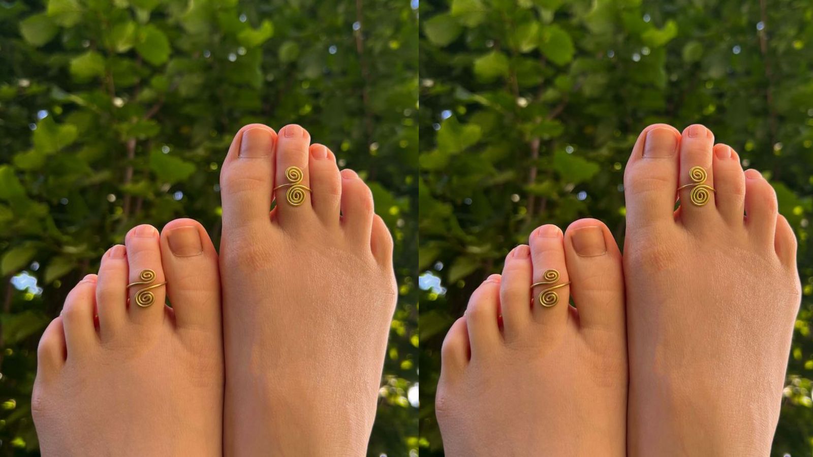 सावन की हरी साड़ी में अगर आपको सिल्वर बिछिया नहीं पसंद तो आप इस तरह गोल्डन कलर के बिछिया ट्राई कर सकते हैं। बिछिया की ये स्पाइरल गोरे पांव पर खूब जचेगा। गोल्डन कलर में बिछिया काफी शानदार लगेगी, जिसे आप हर तरह के साड़ी और सूट के साथ पहन सकती हैं।