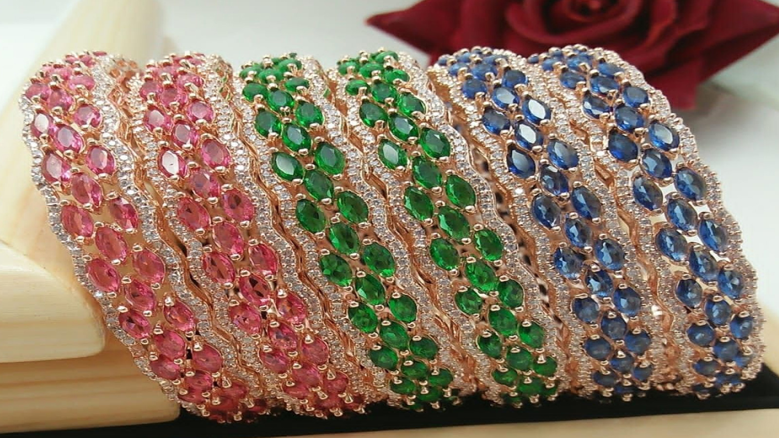 कलरफुल स्टोन से सजे बैंगल्स हाथों की खूबसूरती में चार-चांद लगा देते हैं। अगर आपको बहुत सारी चूड़ियां पहनने का शौक नहीं है, तो आप स्टोन वर्क वाले इस तरह के बैंगल्स डिजाइंस चुन सकती हैं। साड़ी या सूट के साथ इन्हें दो-दो के पेयर में भी पहना जा सकता है। ये आपको एक क्लासिक और एलीगेंट लुक देने में मदद करते हैं।