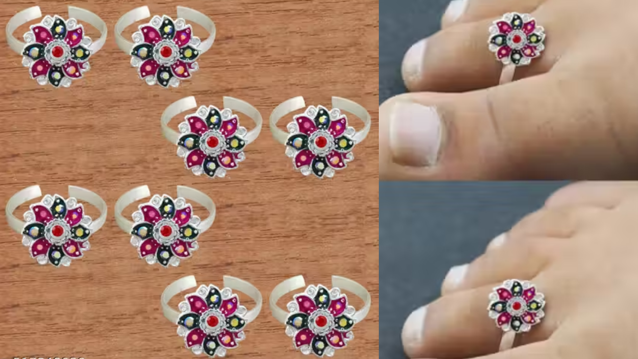 Toe Ring Designs: चांदी की बिछिया परंपरा के साथ सुहागिन महिलाओं की खूबसूरत में चांद जैसी चमक जोड़ती है। ये केवल सुहाग की निशानी नहीं बल्कि अब फैशन का अलग ट्रेंड बन चुकी है। बाजार में मीनाकारी से फ्लोरल पैटर्न वाले डिजाइन महिलाओं को खूब पसंद आते हैं, लेकिन इस वेडिंग सीजन में स्टोन वाली बिछिया की अलग डिमांड है। अब इसे Silver में खरीदना मतलब 2-3 हजार रुपए में खर्च करना है, ऐसे में हर फंक्शन को खास बनाते हुए 180-200रु में देखें फैंसी New Toe Rings, जो हर आउटफिट के साथ ग्लैमर इन्हेंस करेंगी।